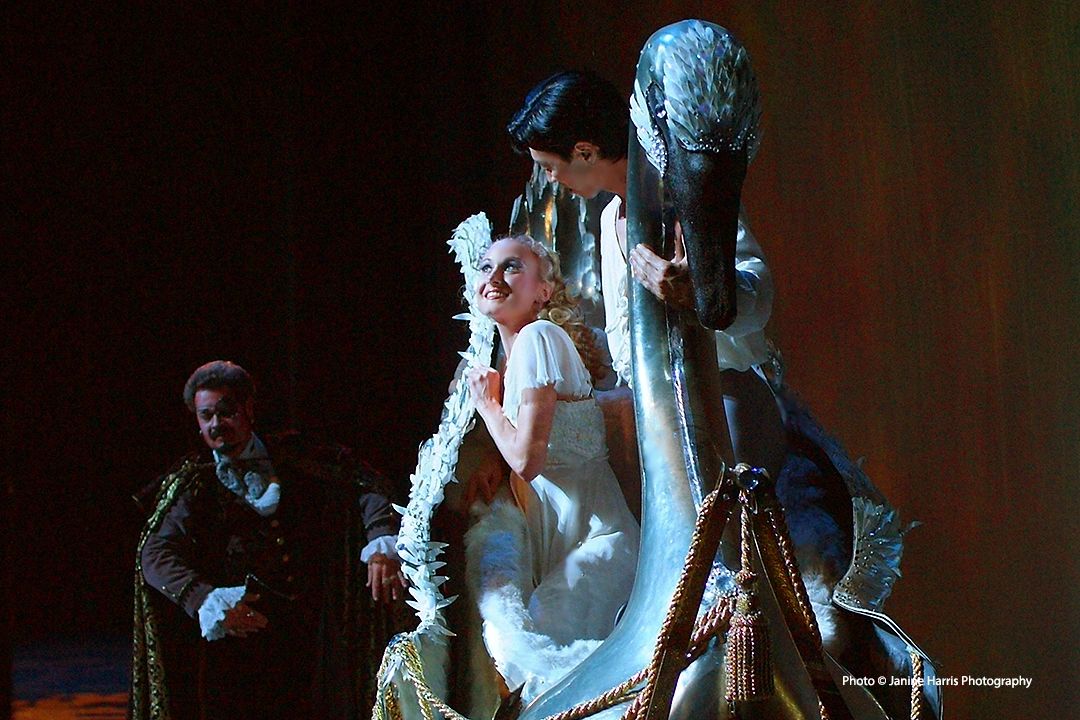 Flying by Foy based in Las Vegas was contacted for the various flying effects. They were known for the invention and safety of all flying effects used professional theatre. They had flown Mary Martin in Peter Pan, and Liberace AND his piano in his huge Las Vegas Hilton shows. Mrs. Hales choreographic design needed a silver swan sleigh to weighing over a half a ton to be flown from the grown and into the “sky.”